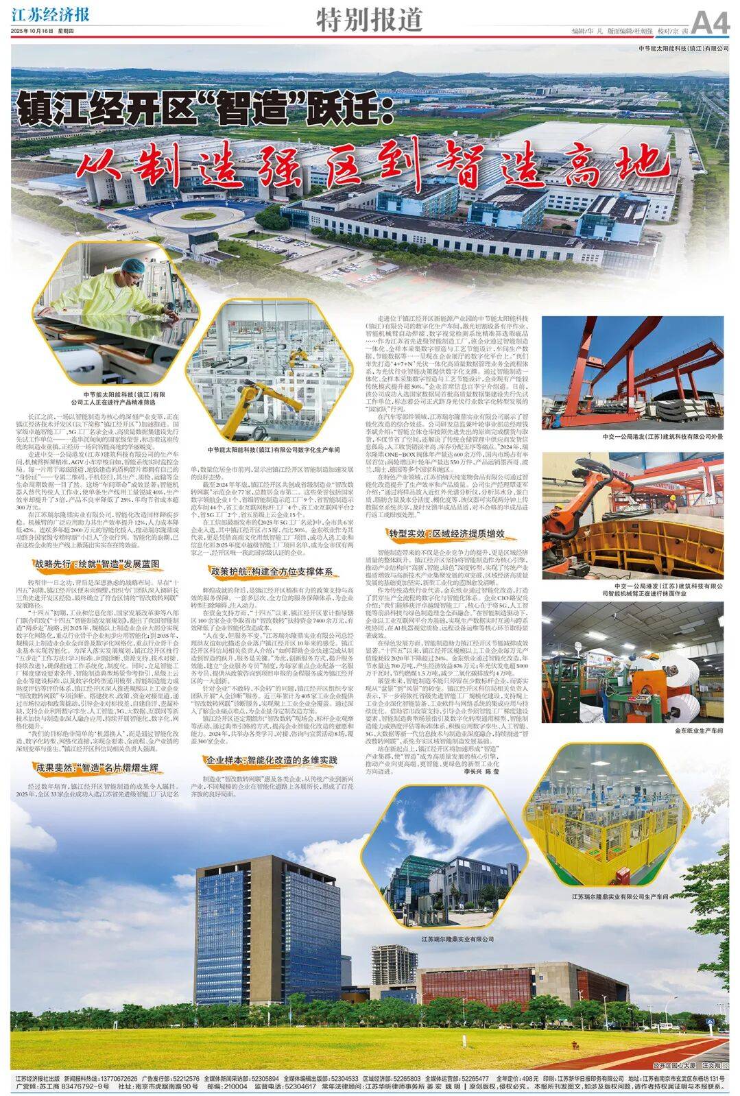 10月16日,《江苏经济报》刊发文章《镇江经开区“智制”跃迁:从制制强区到智制高地》,聚焦镇江经开区从保守的制制业沉镇向智能高地的富丽。