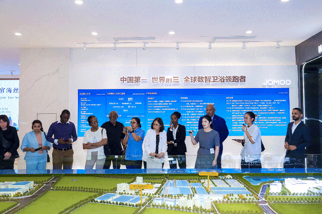 9月24日,“2025驻华海丝福建行”走进九牧集团。这支由津巴布韦、莫桑比克、尼泊尔、克罗地亚、苏丹、苏里南、巴哈马、佛得角等8国驻华代表构成的团队亲临现场?。